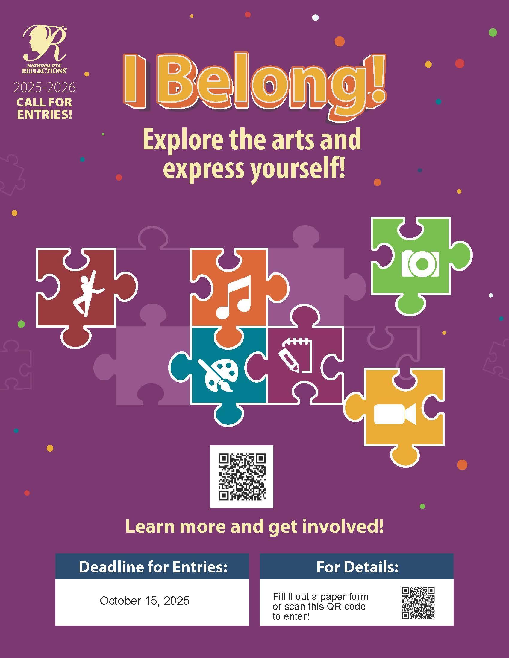 The deadline to submit entries is October 15. Attached is a poster with a QR code that links to the entry form. Please post in your google classroom.