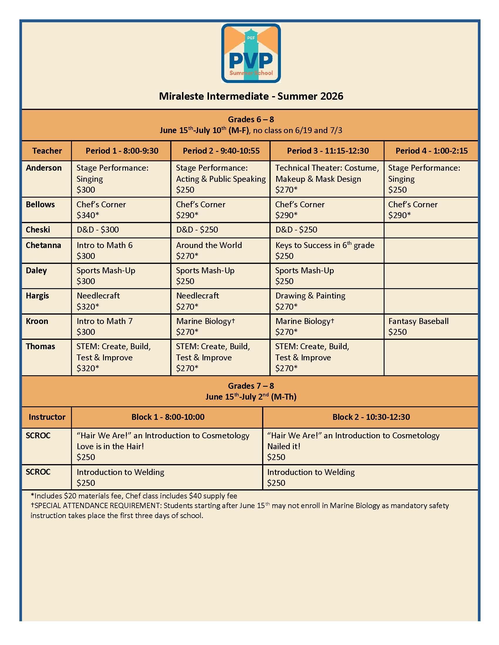 Classes fill quickly, so we encourage families to review the options and plan ahead when registration opens on March 30 at 9 am. Go to pvpss.com for more information and to register!